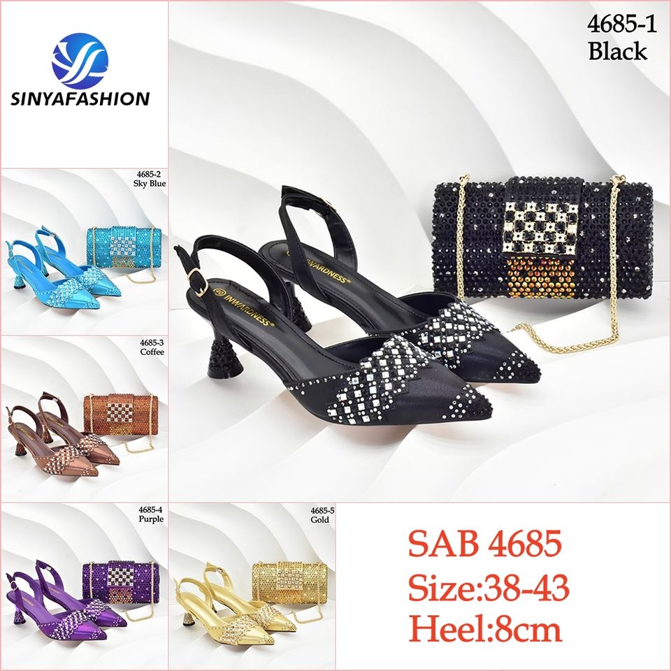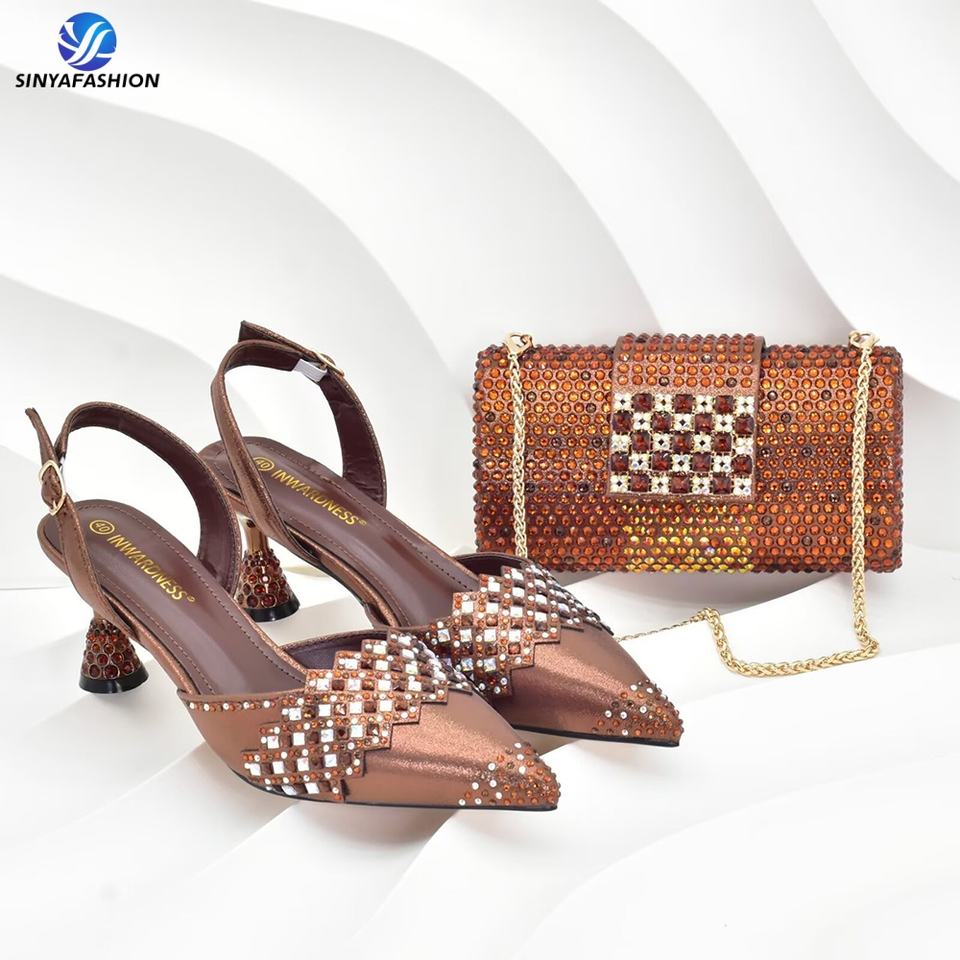 Set Scarpe e Borsa da Sposa Sinya, Lussuoso Completo Estivo Dorato con Tacchi Alti a Punta Chiusa e Cristalli per Donne Africane