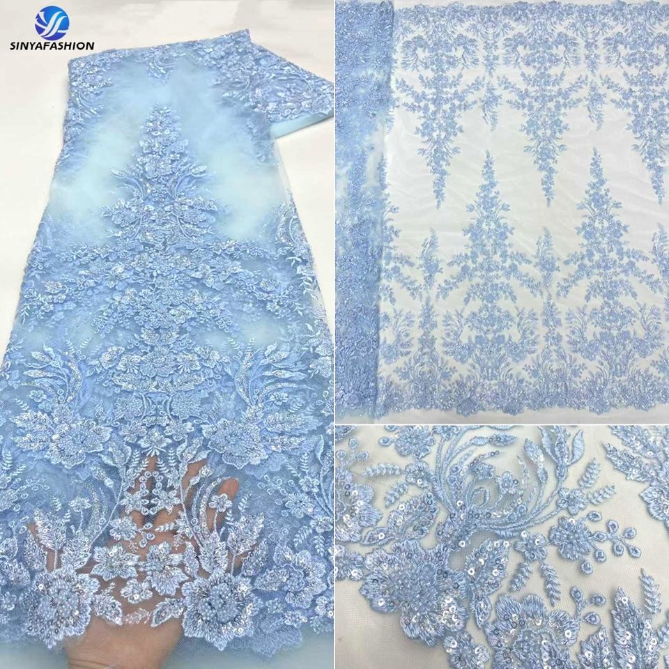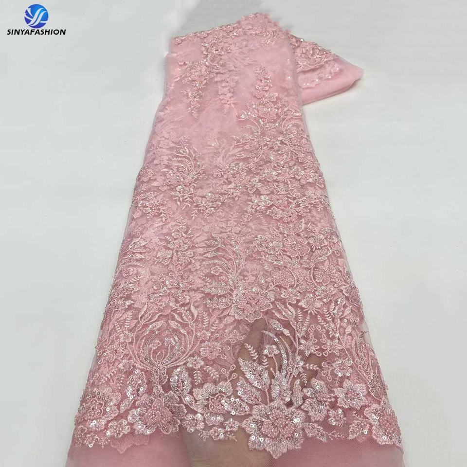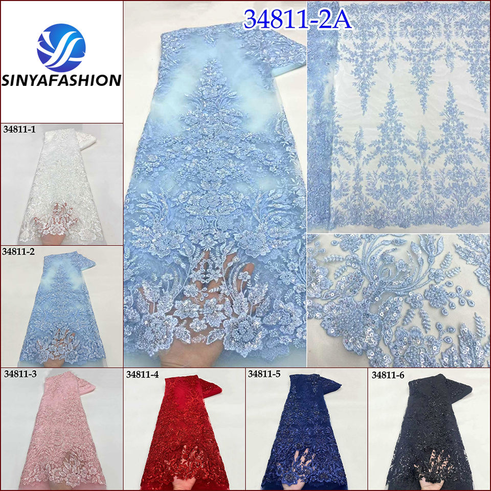 Pizzo Francese Africano Blu Navy Sinya 5 Iarde Alta Qualità Lussuoso Pizzo in Tulle con Paillettes Ricamato e Perline Bianco Rosso Rosa