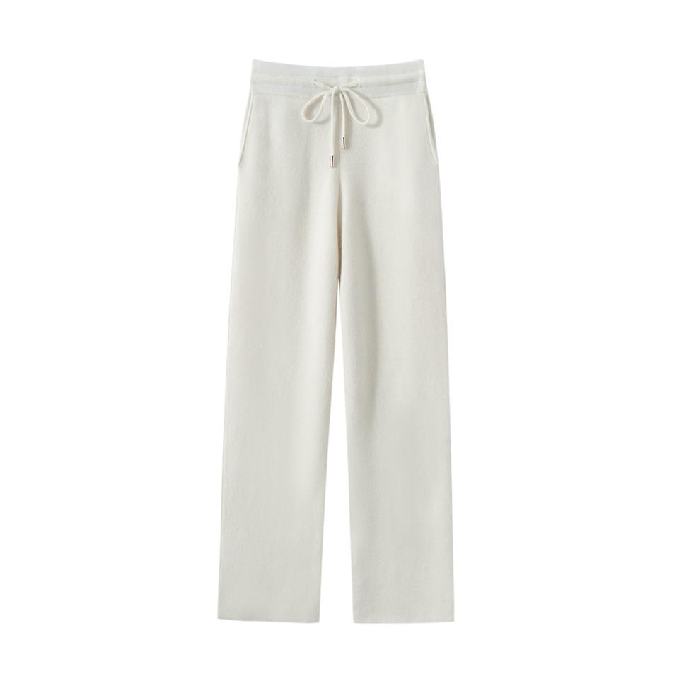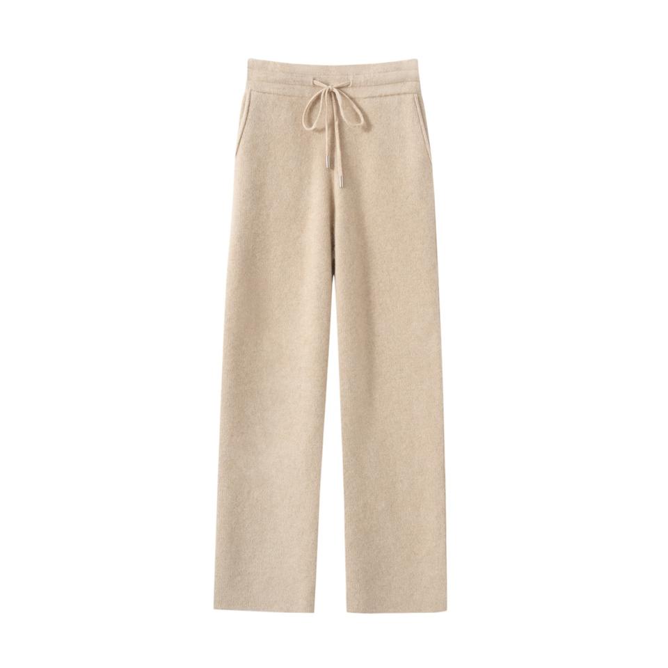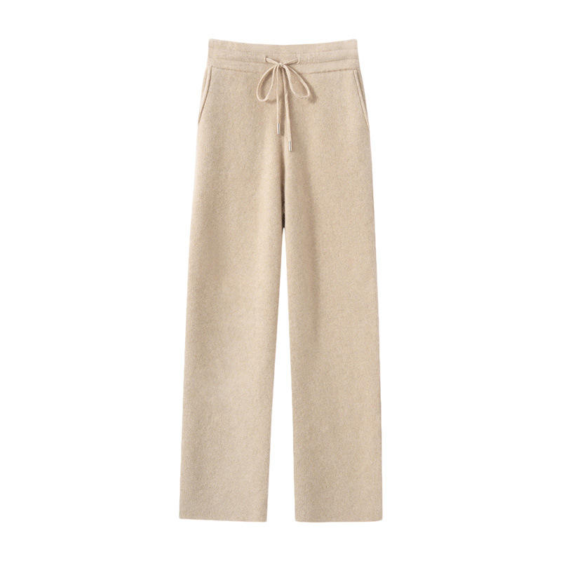 Pantaloni Invernali Siping a Vita Alta, Spessi, Dritti, Lunghi, in Cashmere Lavorato a Maglia, 100% Puro Cashmere Vintage per Donna