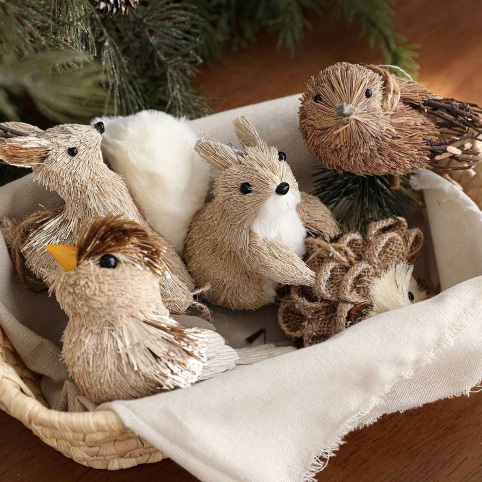 Sisal Woodland Animal Mini Christmas Tree Ornaments Sisal Straw Animals Figurines Christmas Ornaments for Rustic Christmas Decor