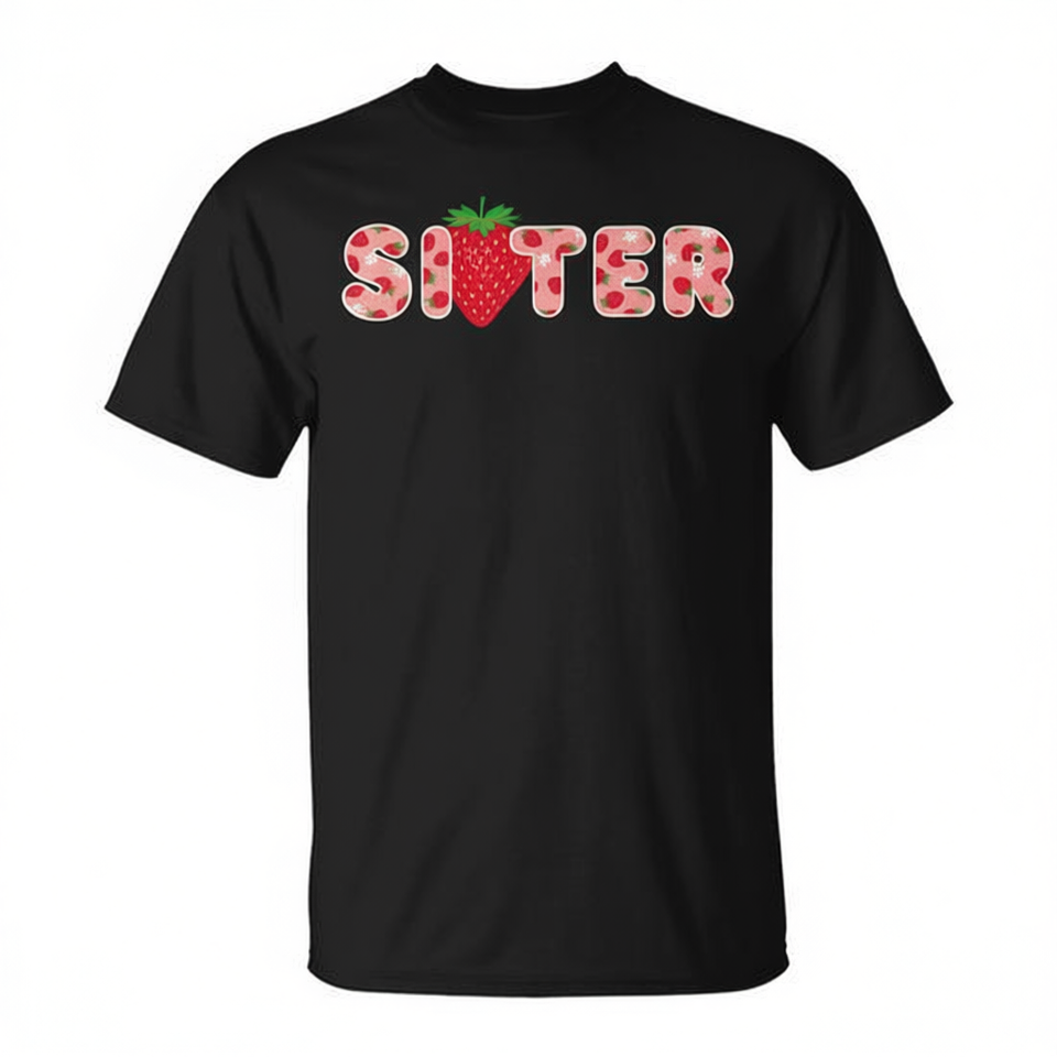 Maglietta Promozionale per il Primo Compleanno della Sorella con Design a Tema Fragola per Occasioni Speciali