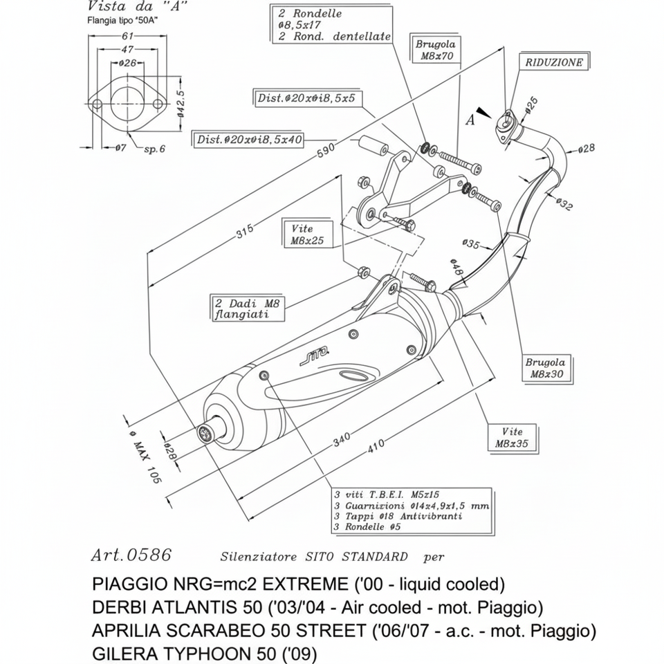 Sito raffreddato ad aria motore Piaggio moto impianto di scarico per APRILIA SCARABEO 50 strada 2006-2007 modello 17155