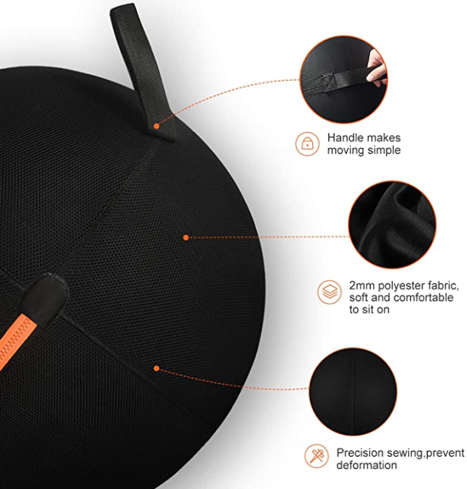 Sedia a Sfera in PVC 55cm, Leggera e Autoportante, Set per Esercizi di Yoga Ergonomici per Attivare la Postura, per Ufficio, Dormitorio, Casa e Palestra