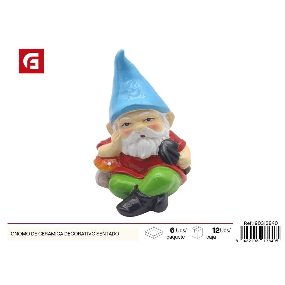 Scultura decorativa all'aperto in ceramica gnomo da giardino seduto