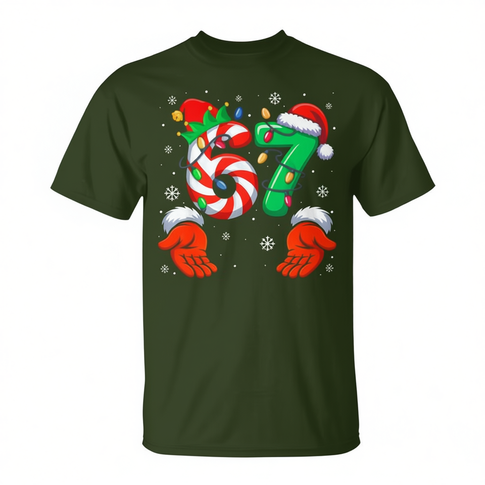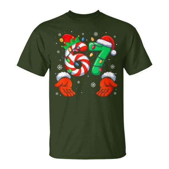 Six Seven 6 7 Meme T-shirt natalizia con design natalizio per la famiglia, Babbo Natale, elfo