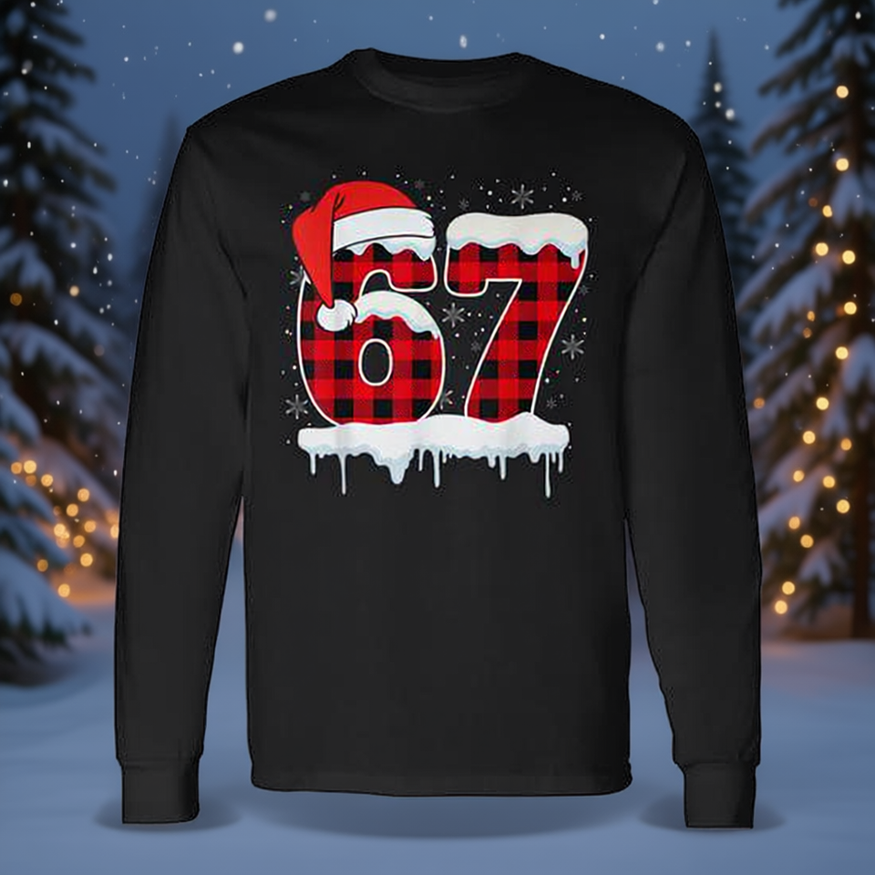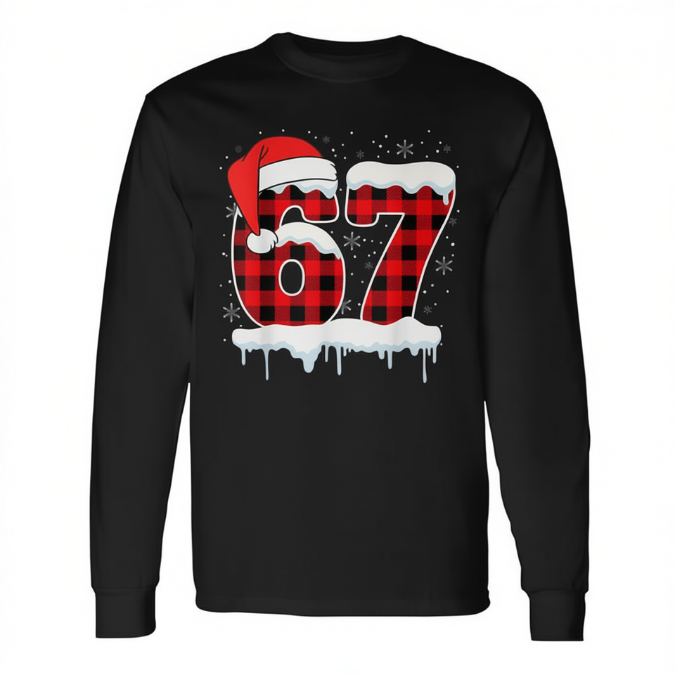 Six Seven 67 T-shirt a maniche lunghe a quadri rossi natalizi per ragazzi Gen Alpha Xmas Shirt