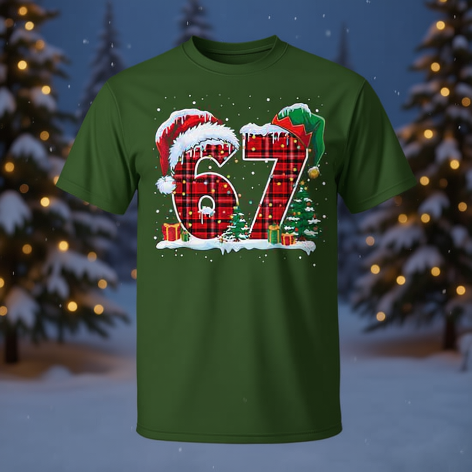 Six Seven 67 T-shirt natalizia a quadri rossi con design natalizio