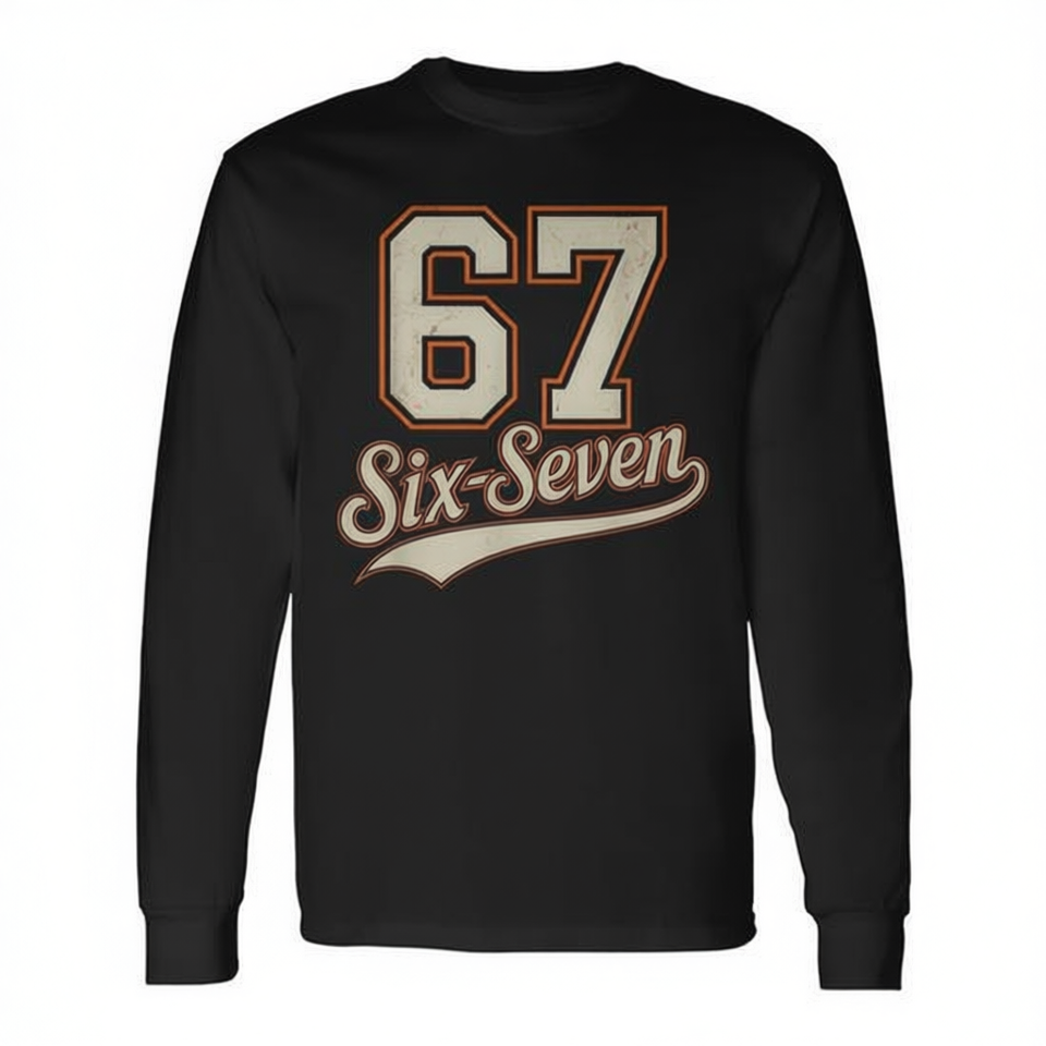 Six Seven 67 T-shirt a maniche lunghe con design divertente e meme