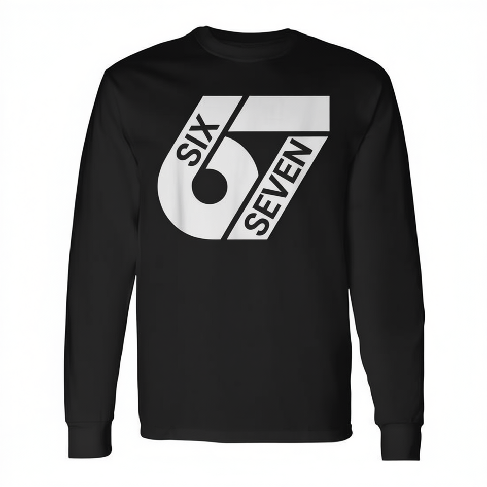 Six Seven T-shirt a maniche lunghe nera con design grafico Abbigliamento unisex