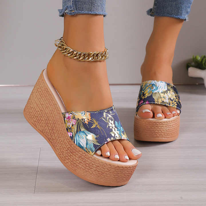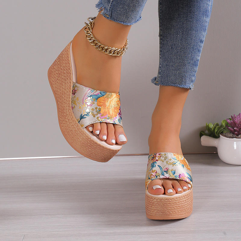 Size 43 Fashion Women's Slippers 2024 Summer New Thick Sole Slope Heel Large Print Outdoor Beach Women's Slipper Sandals