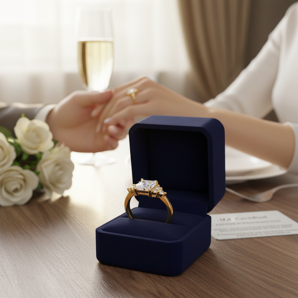 Misura 7 gioielli pregiati oro e rodio placcato anelli di fidanzamento con cuscino taglio pietra naturale e CZ IGI certificato oro giallo