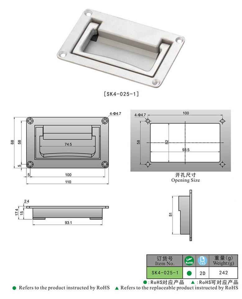 Sk4-025-1 alta classe industriale in acciaio inossidabile pieghevole maniglia della porta Design pieghevole a molla con finitura lucida confezionata in scatola