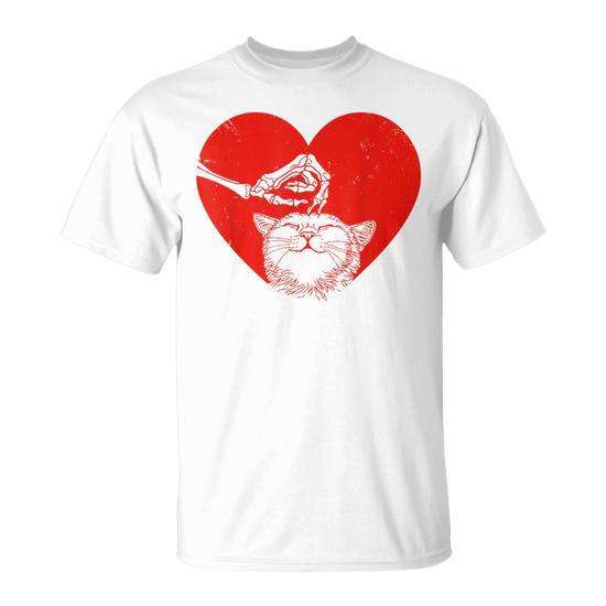 T-shirt con stampa digitale di cuore di San Valentino con scheletro e gatto, stile moderno per gli amanti dei gatti, regali di San Valentino