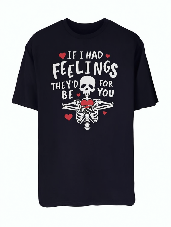 Skeleton Feelings Valentine's Day T-Shirt Unisex Short Sleeve Crew Neck Graphic Tee 100% Cotton Jersey Regular Fit