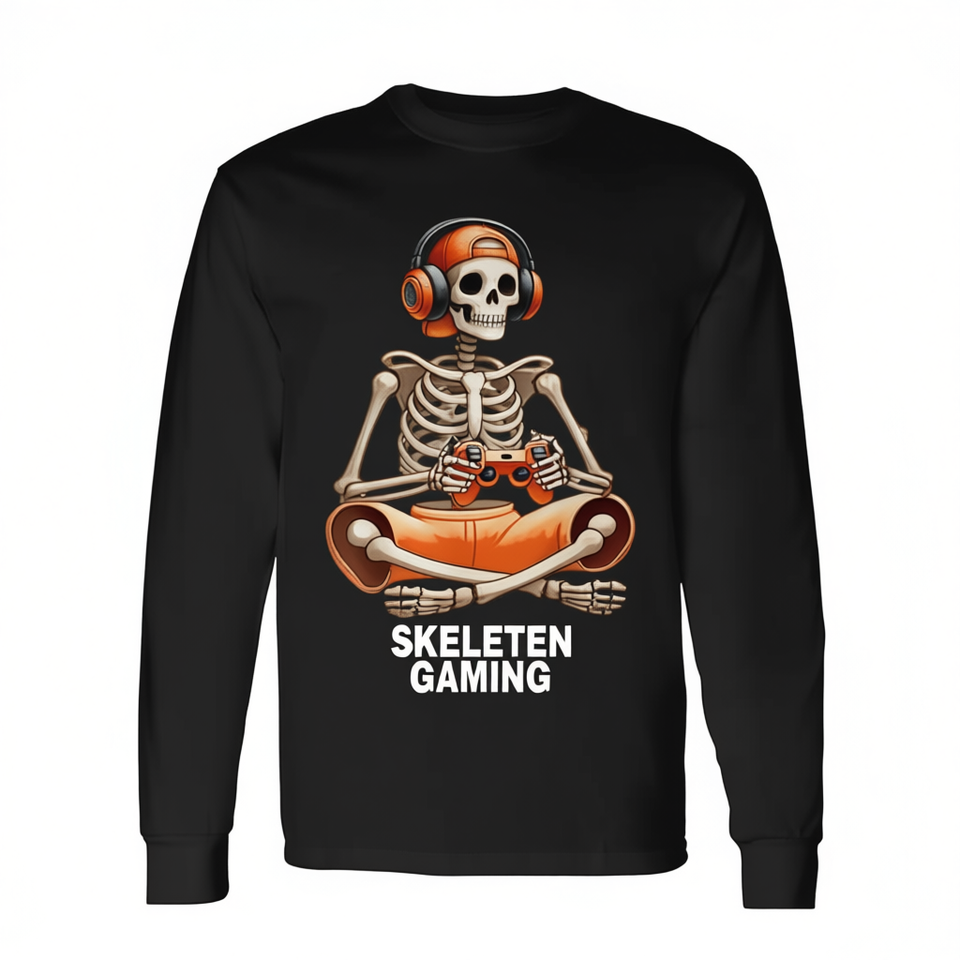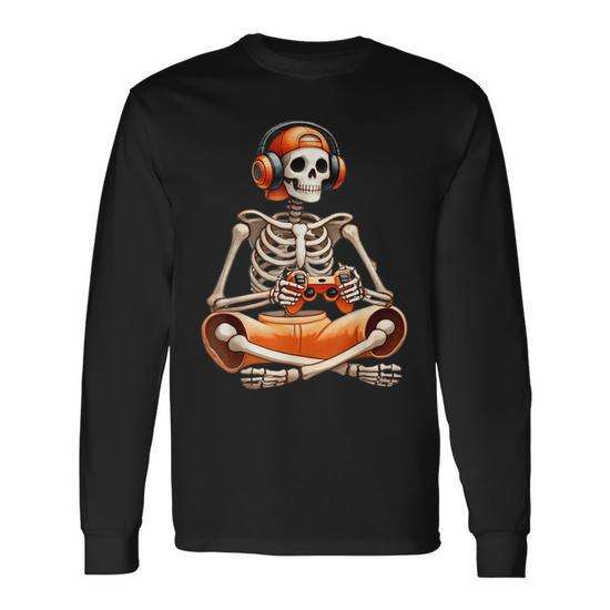 Maglietta a maniche lunghe Skeleton Gaming per ragazzi e uomini, abbigliamento da gamer per Halloween