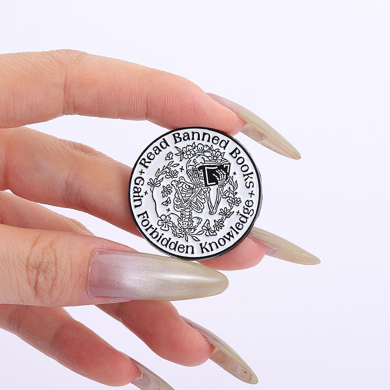 Skeleton Reading Banned Books Enamel Pin Punk Gothic Skull Quote Brooch Jewelry Gift for Book Lovers Wholesale