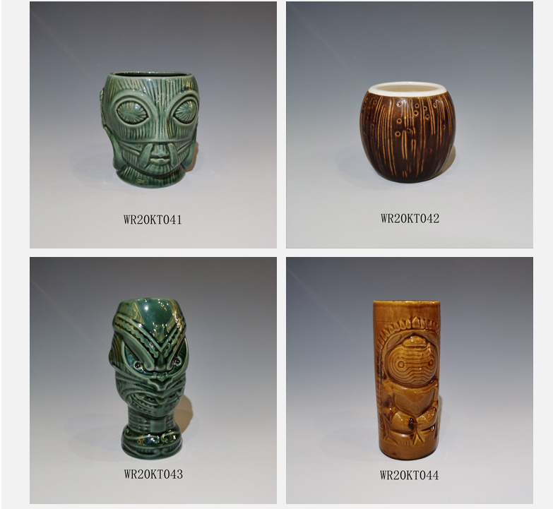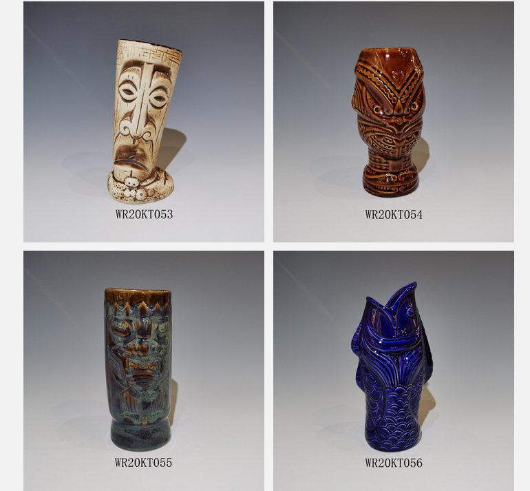 Tazza Tiki in Ceramica con Totem Scheletrici, per Cocktail, Vino, Bevande, Stile Hawaii e Spiaggia