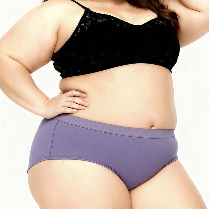 Intimo Femminile a Vita Media, Taglia Grande, Tinta Unita, Elasticizzato, Coprente, Delicato sulla Pelle
