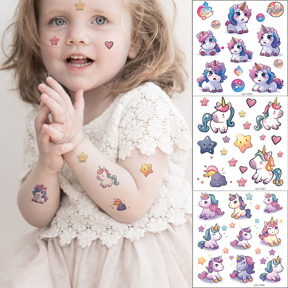 Pelle sicura impermeabile farfalla stelle animali fiore colore del corpo inchiostro stampato finti bambini viso Glitter tatuaggio temporaneo per bambini