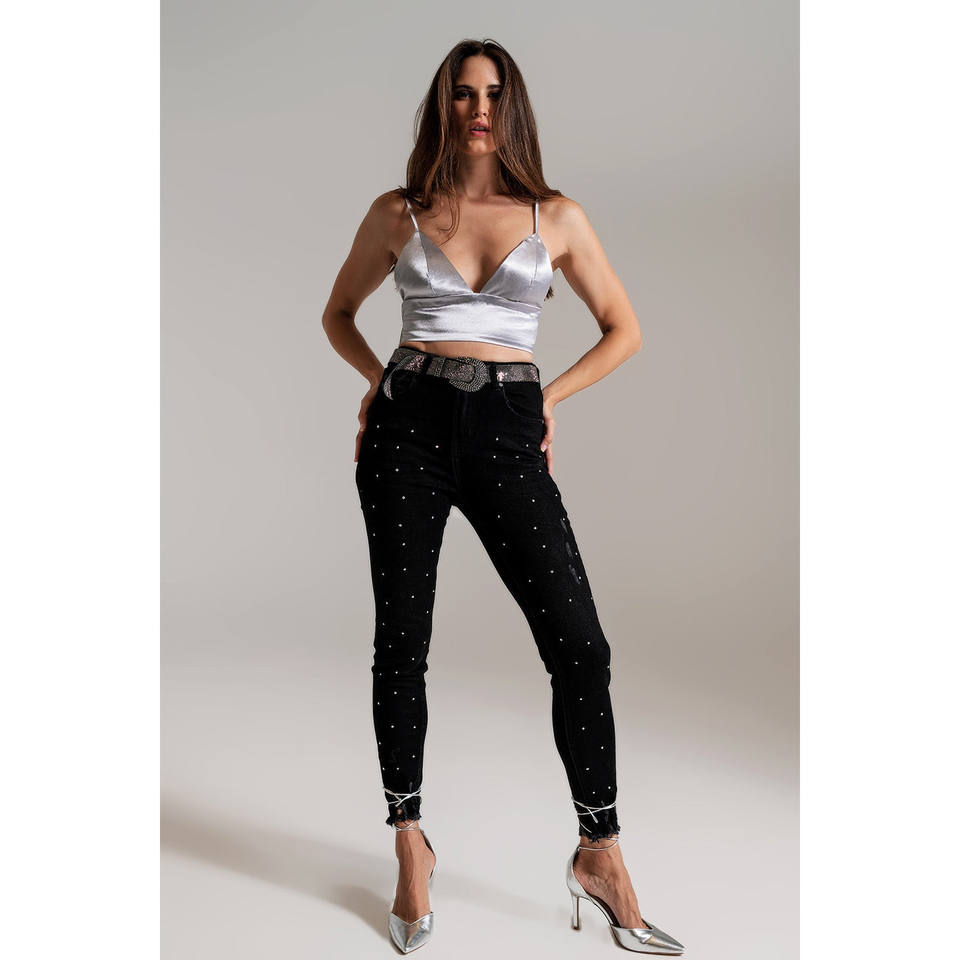 Jeans skinny con dettagli decorativi in lavaggio nero