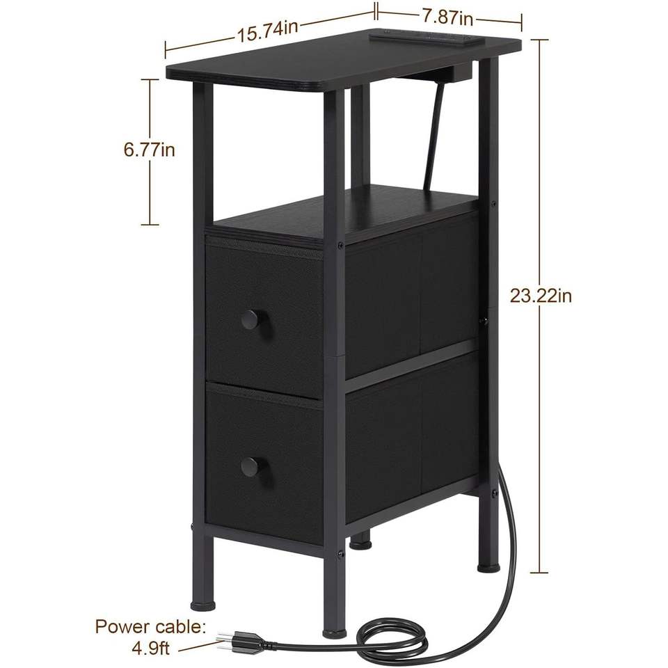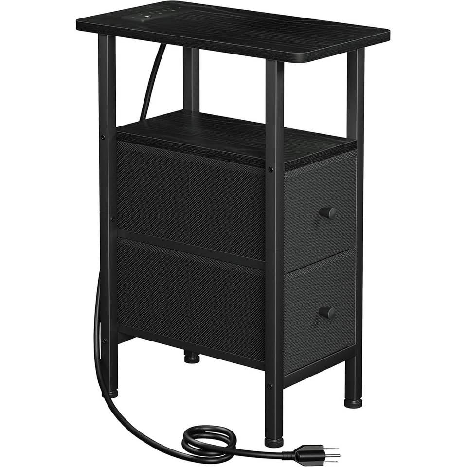 Tavolino Sottile da Salotto con Cassetti in Tessuto, Tavoli Console per Arredamento Casa e Stazione di Ricarica