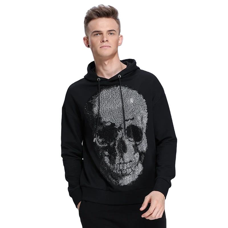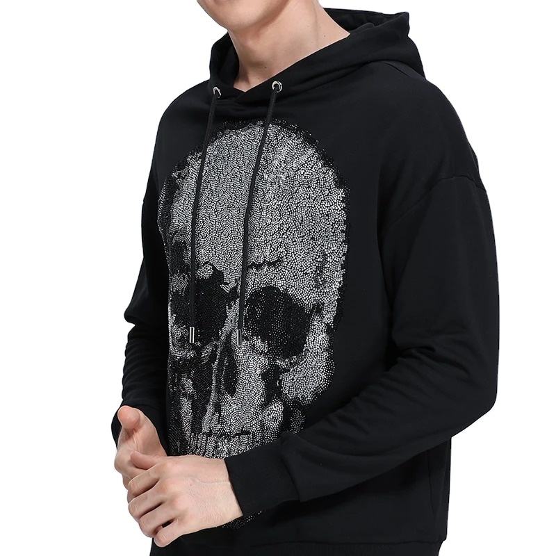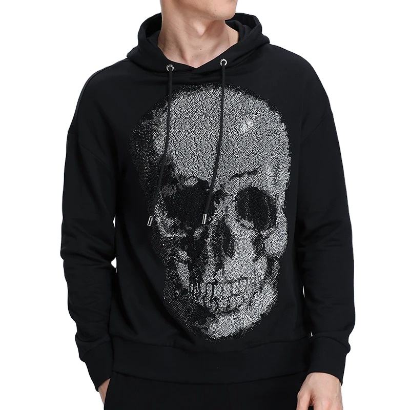 Skulls Rhinestones Diamond Men's Clothing Fashion Streetwear Hoodies Slim Fit Hop Hoody 100% Cotton 2025 Winter Funny One Piece