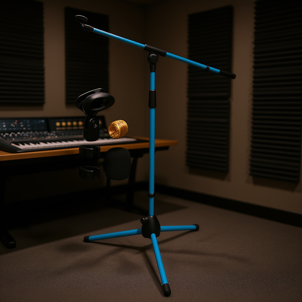 Supporto per microfono Sky Blu con treppiede, braccio regolabile in alluminio da 18-72 pollici, montaggio a pavimento per uso in studio di registrazione e canto.