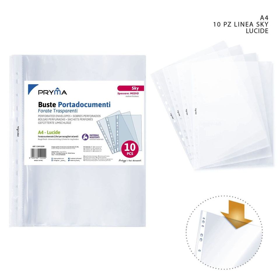 Sky Series 10-Pack Glossy A4 Multi-Drill Pockets - Office Supplies