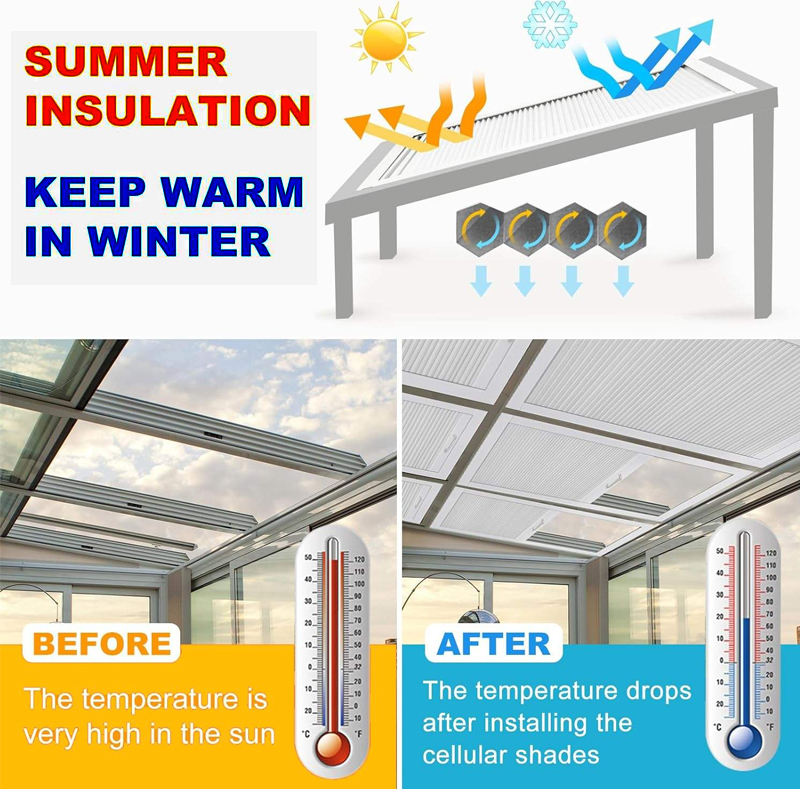 Skylight Day Night Honeycomb Pleated Blinds Roof Window Shades With UV Resistant Polyester Fabrics Energy Efficient