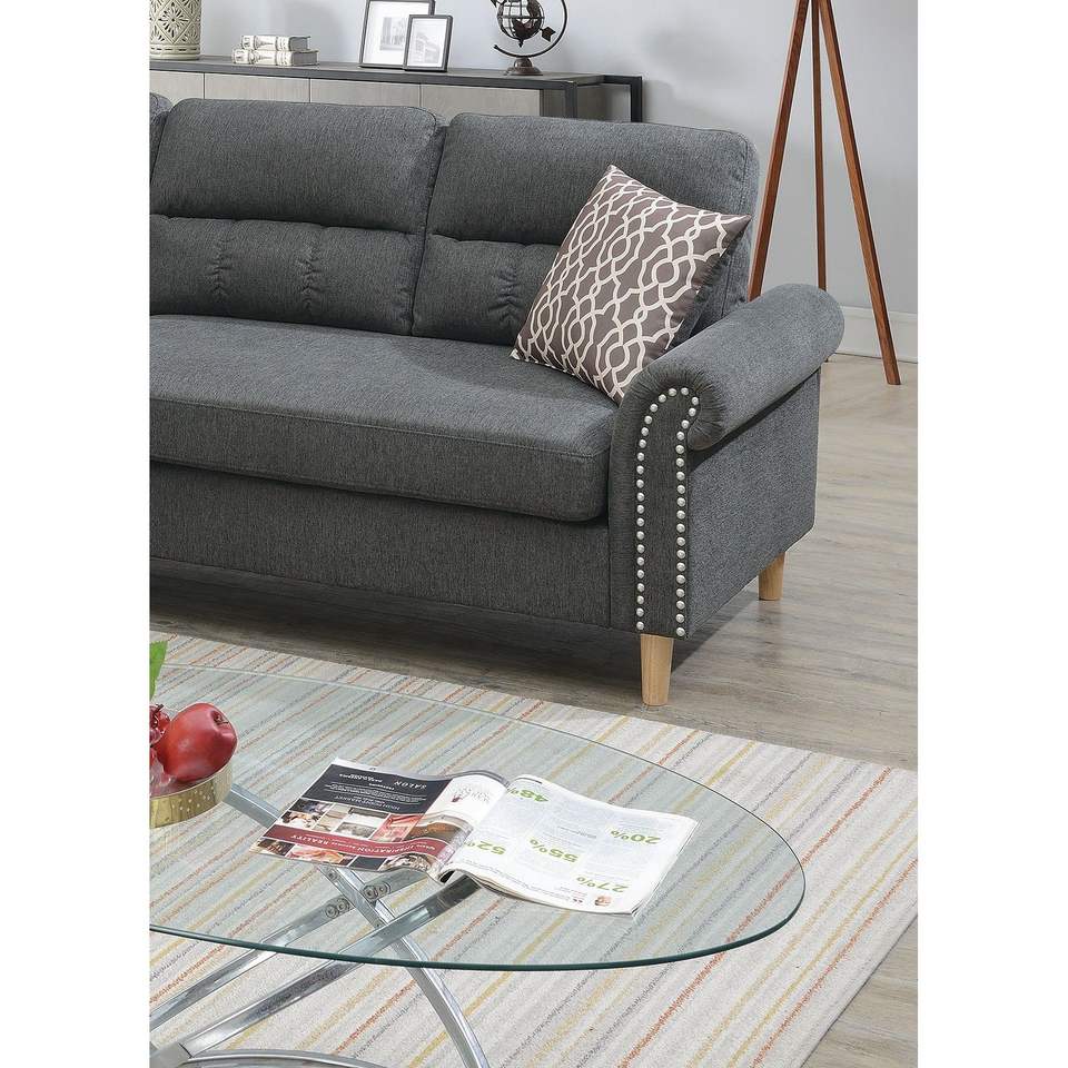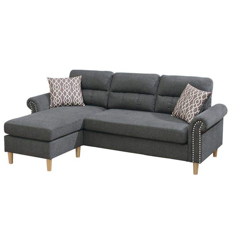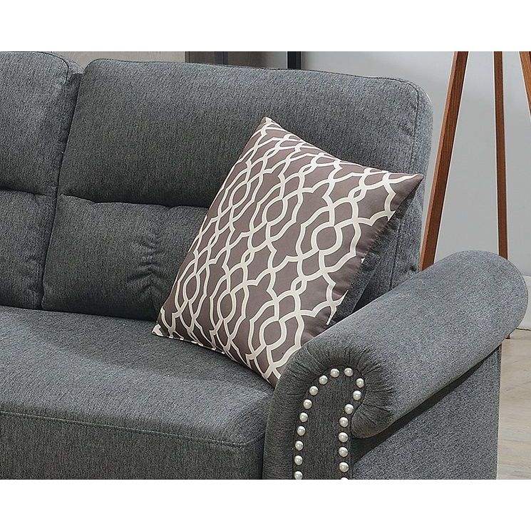 Divano Sezionale Reversibile in Polifibra Colore Ardesia con Chaise Longue, Cuscini Morbidi e Borchie Decorative per Soggiorno