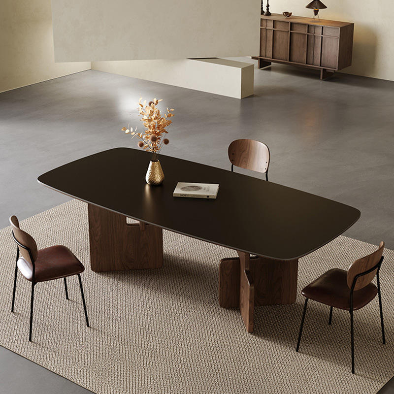 Tavolo da Pranzo in Ardesia, Tavolo Lungo per Soggiorno, da Posizionare Contro il Muro, Set Tavolo da Pranzo in Legno Massello di Lusso Semplice