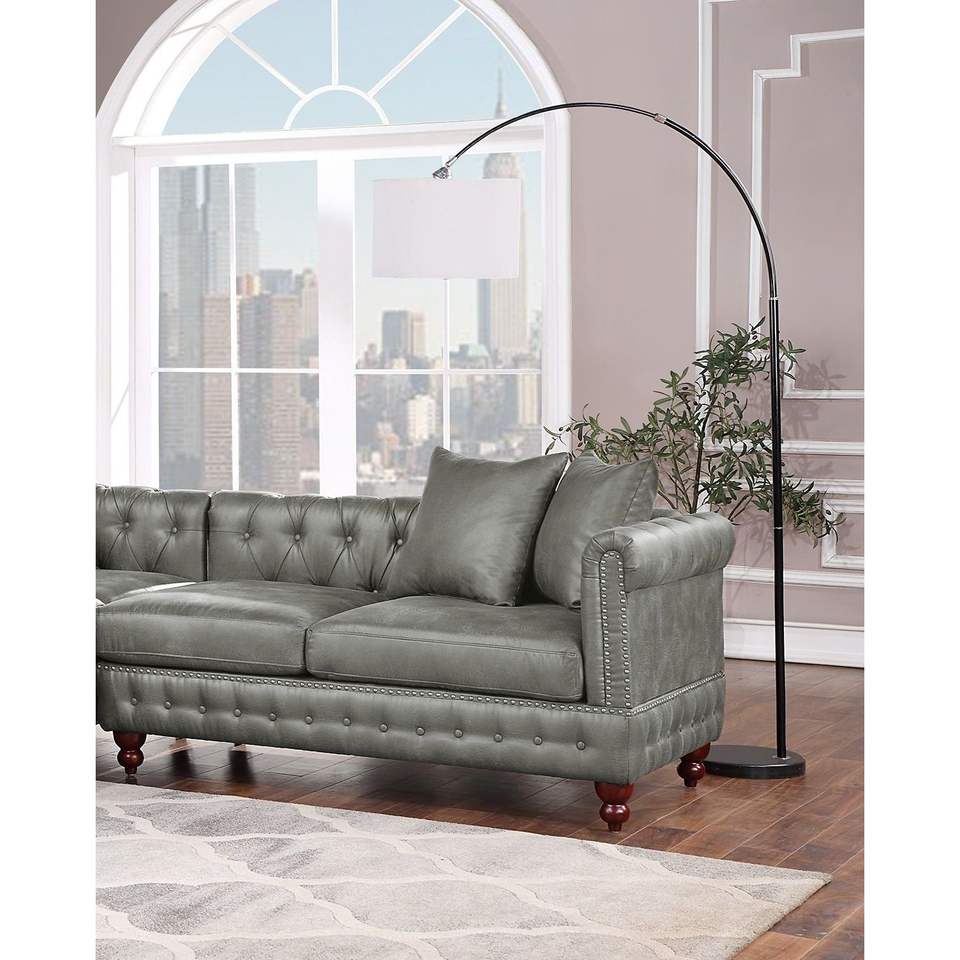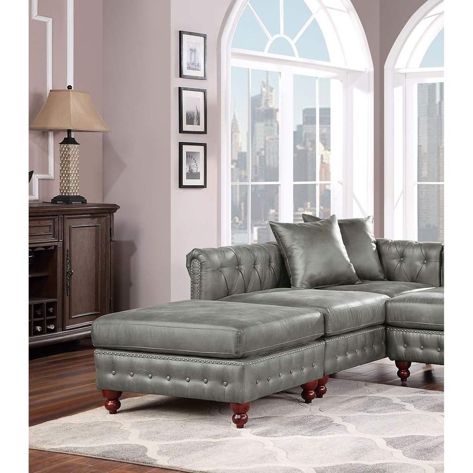 Slate Gray Breathable Leatherette 3pc Sectional Set 2x Reversible Loveseat/Chaise 1x Ottoman Tufted Couch Pillows Living Room