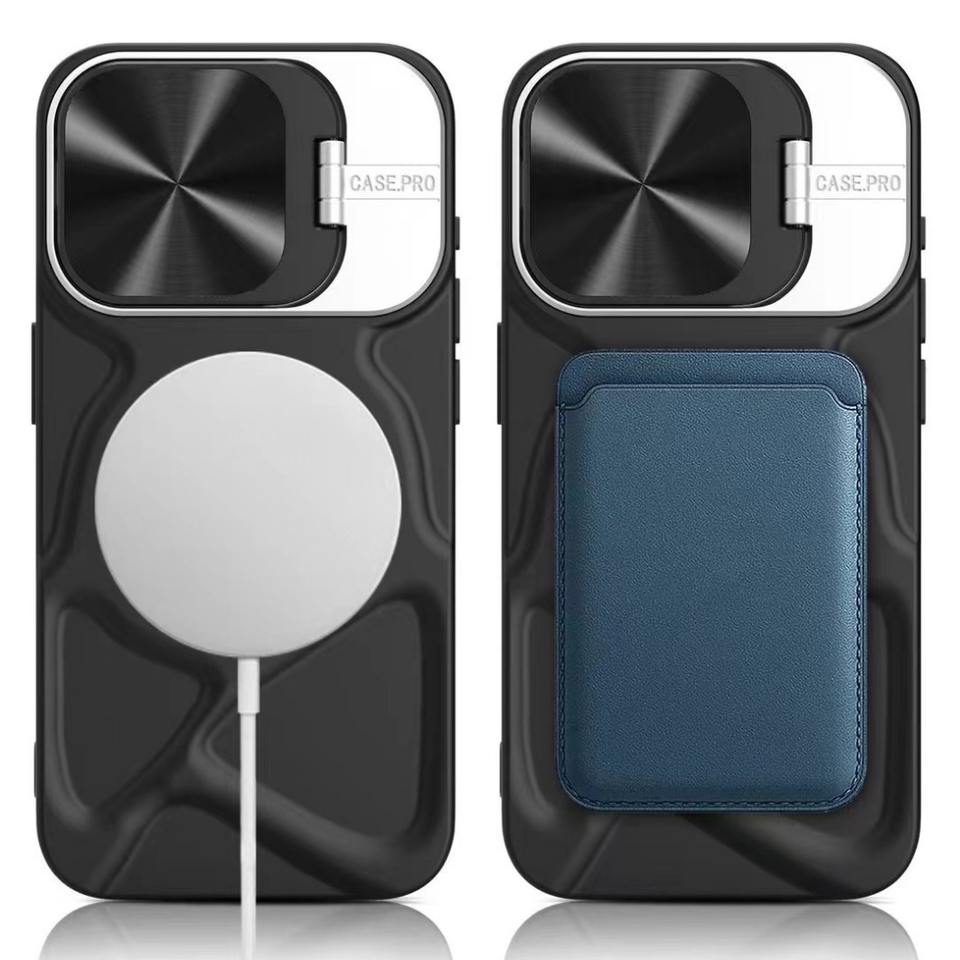 Elegante e creativa porta lenti magnetiche con supporto a protezione completa custodia per telefono in TPU PC iPhone 11 12 13 14 15 Pro Cover a goccia Max
