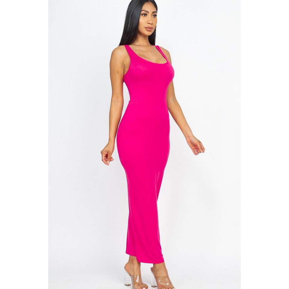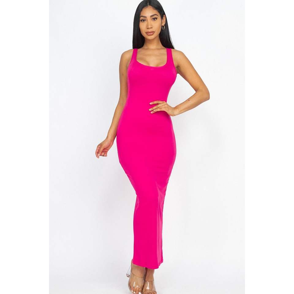 Abito da sera lungo fucsia senza maniche modello D0100HXZ7NP