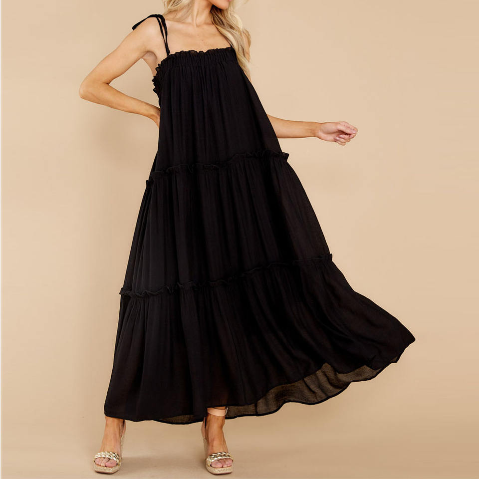 Senza maniche incantevoli abiti in Chiffon Maxi Slim eccezionalmente increspati Vestidos abiti Casual da donna estivi gialli eleganti