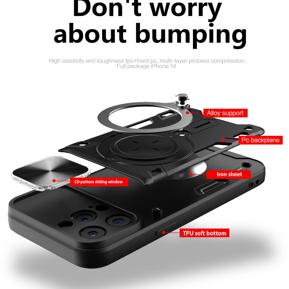 Cover Slide per fotocamera resistente custodia in metallo duro antiurto con supporto protettivo Cover resistente per iPhone 13 14 15 Plus 16 Pro Max