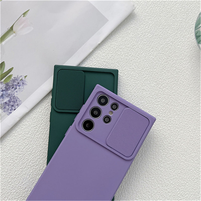 Slide Camera Protect Case for Samsung S23 S22 Ultra S21 Plus S20 FE A53 A73 A23 A33 A13 A52 A72 A32 A22 A12 Pure Silicone Cover