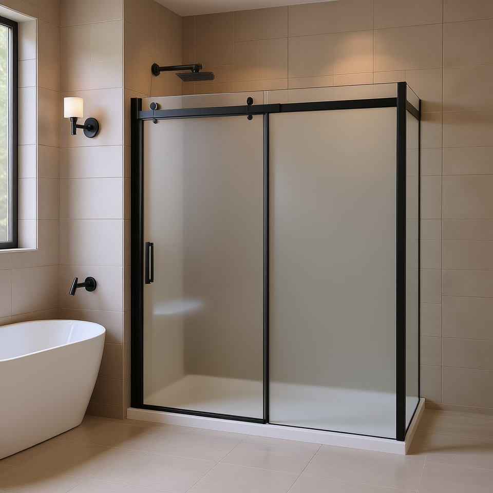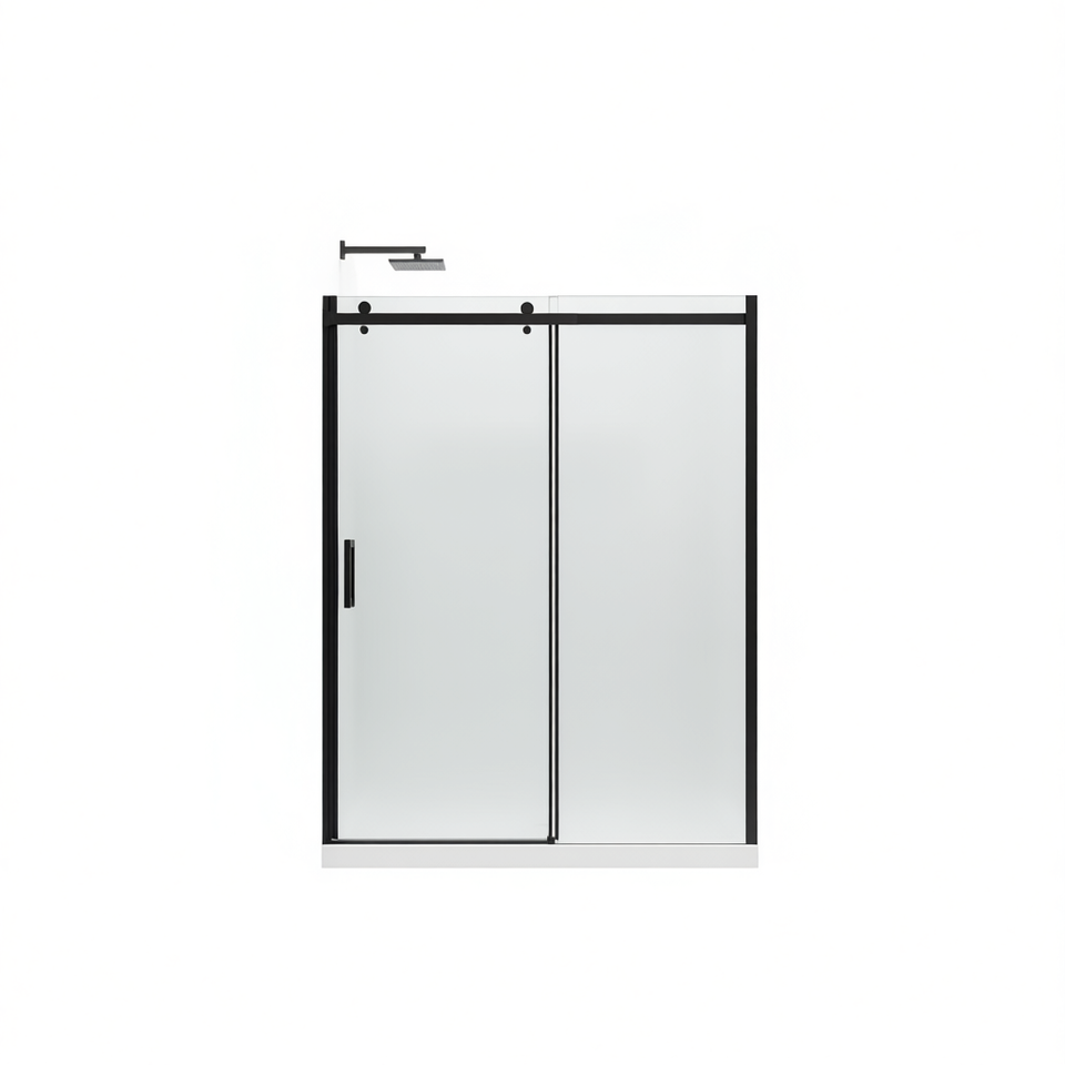 Porta Doccia Scorrevole in Vetro Temperato da 5/16 Pollici, Telaio Nero Opaco, Design Minimalista, Box Doccia Rettangolare
