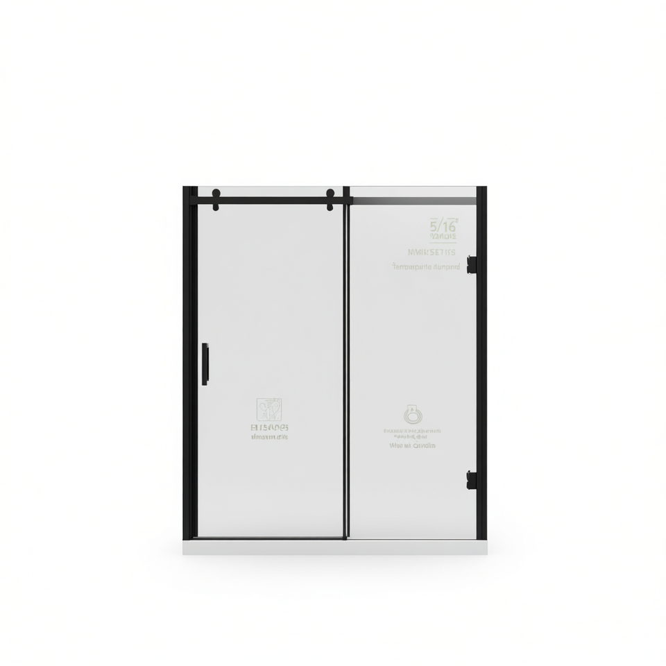 Porta Scorrevole in Vetro Temperato da 5/16 Pollici per Doccia, Telaio Nero Opaco, Design Minimalista