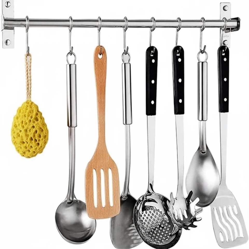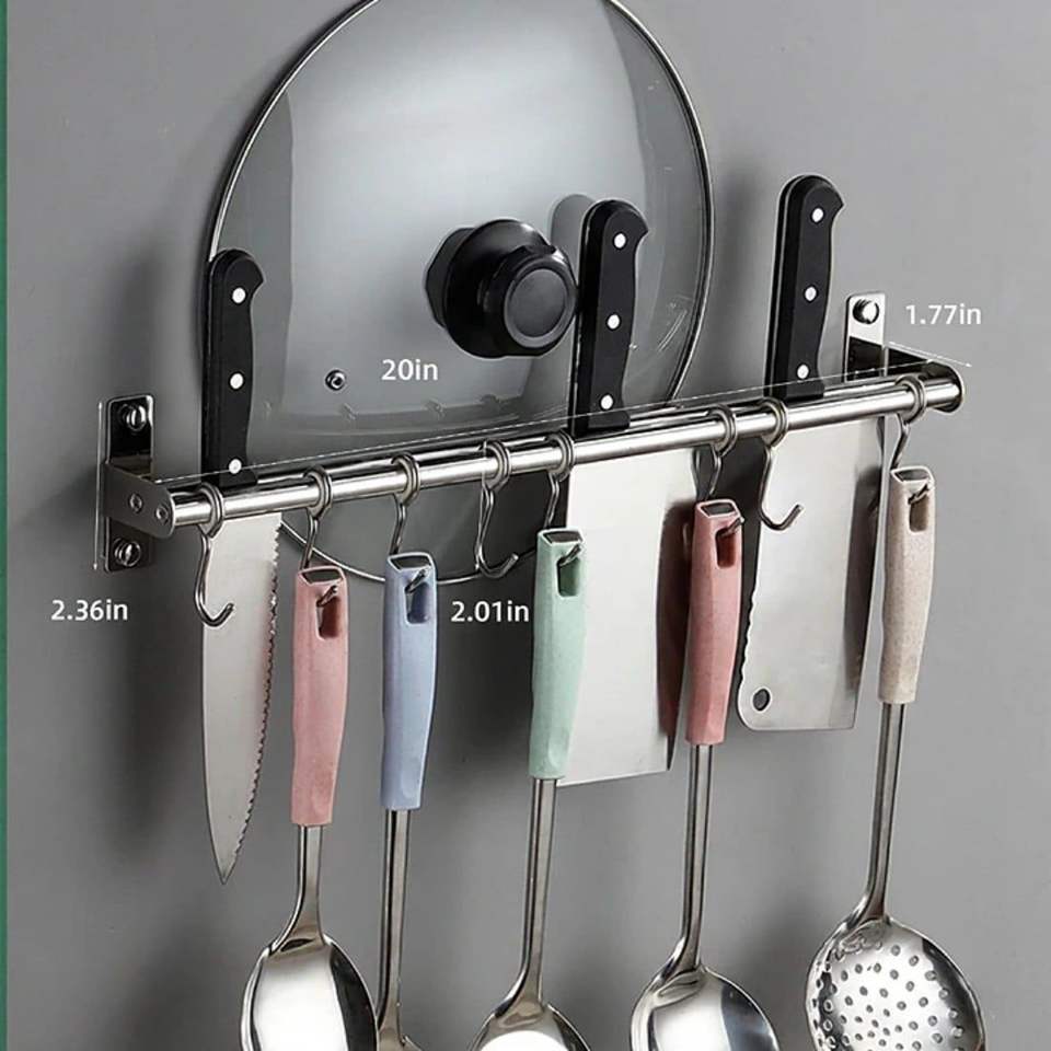 Organizzatore a parete scorrevole con ganci per pentole, padelle e coperchi, per cucina e bagno