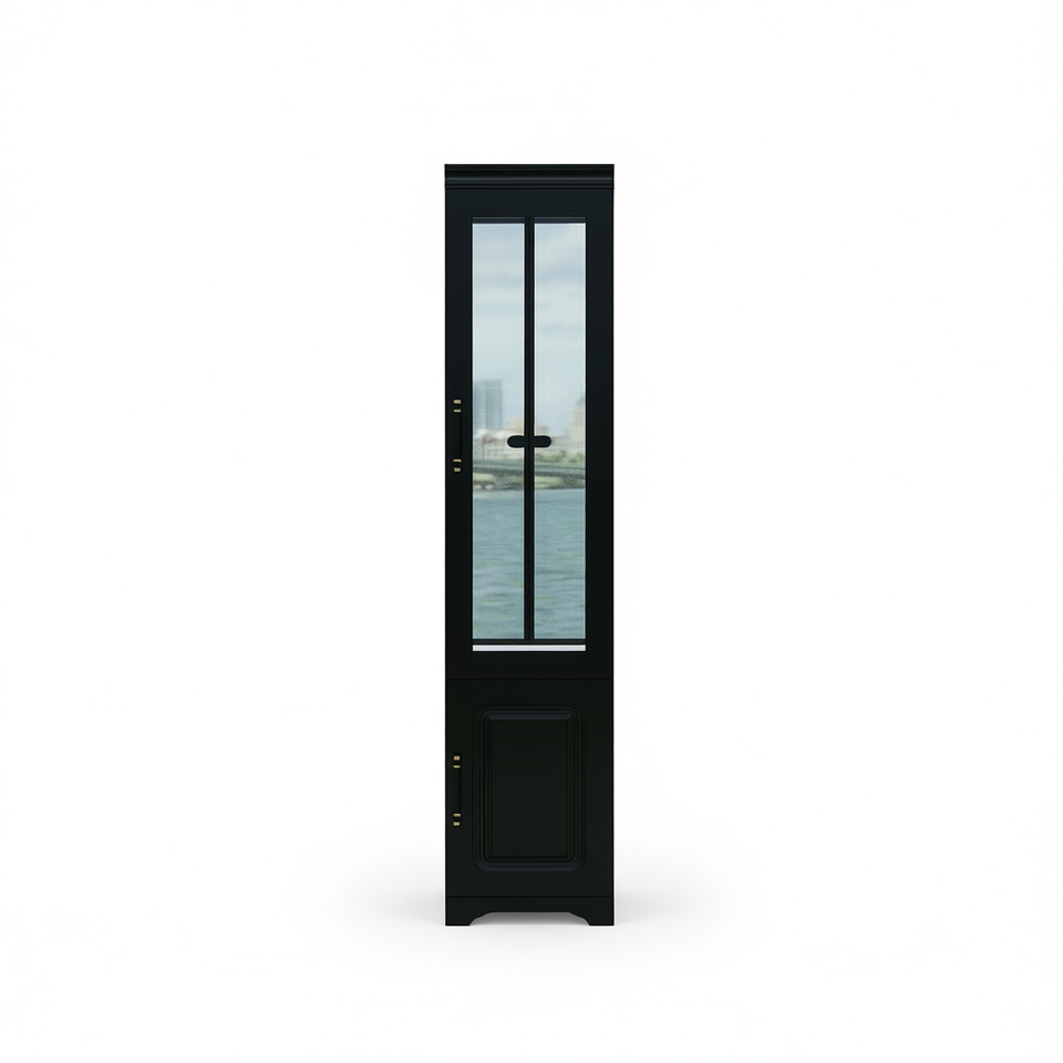 Armadio Alto e Sottile Nero con Porta in Vetro, Organizzatore Salvaspazio per Camere da Letto Piccole e Soggiorni
