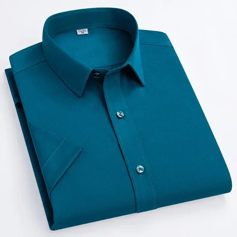 Slim Fit Men's Summer Casual Shirts Breathable and Yarn Dyed Short Sleeve Formal Office Clothes with Elasticity