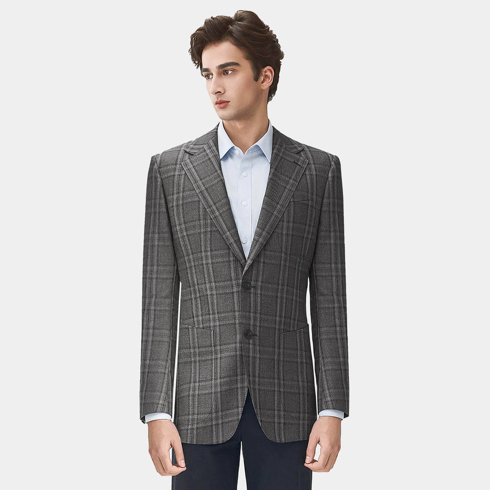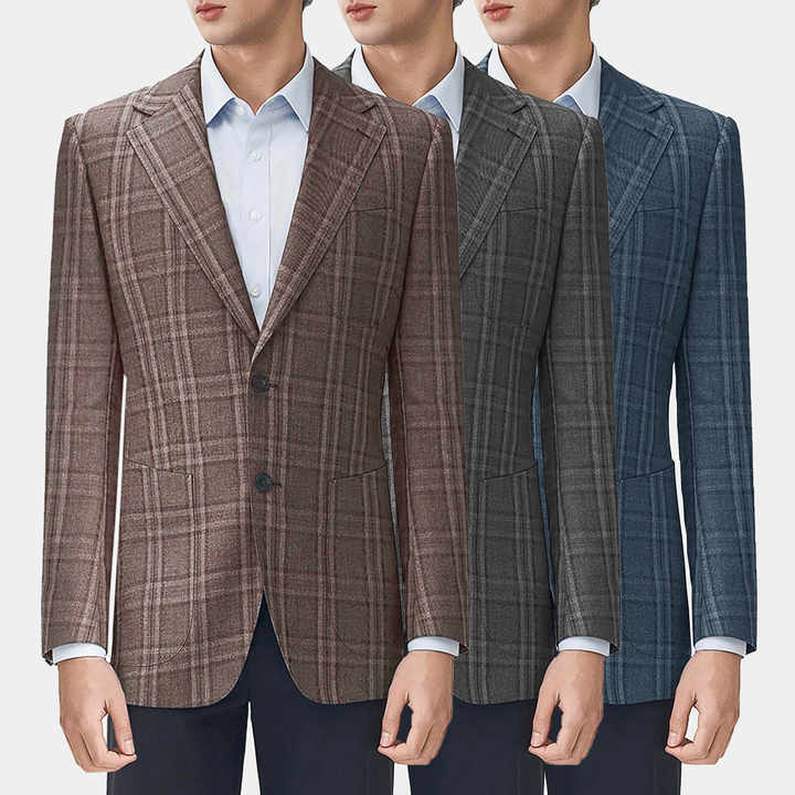 Slim Fit Plaid Stretch Single Breasted Two Button Notched Collar Men's Blazer Suit Jacket Men's Suites & blazer for Business
