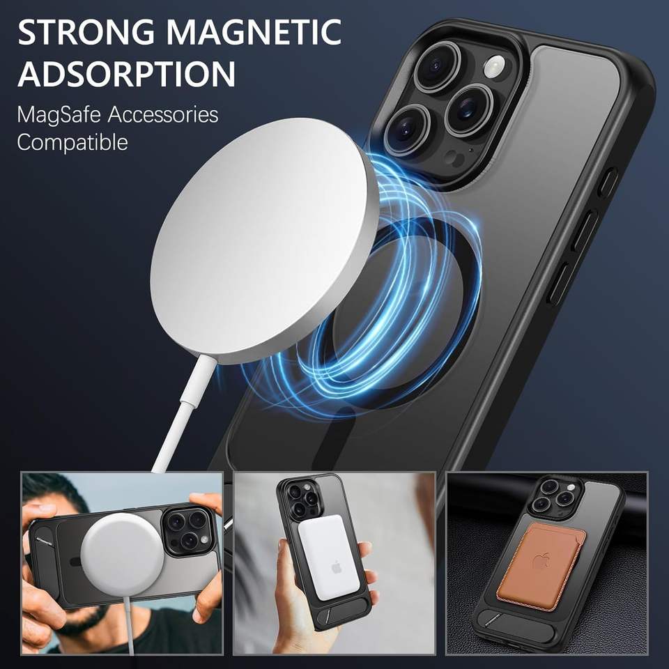 Slim Shockproof Magnetic Matte Finish Case with Invisible Kickstand, for Iphone 16 Pro Max