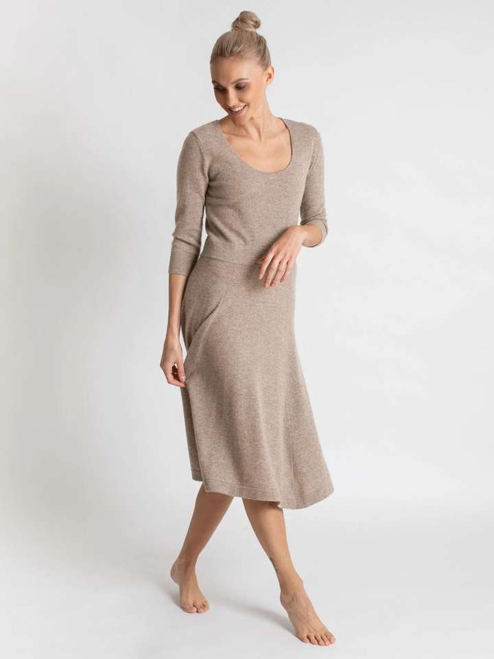 Slim Top Large Skirt Feminine Sensual Soft and Exclusive Breathing and Isolating Knit Cashmere Dress for Women