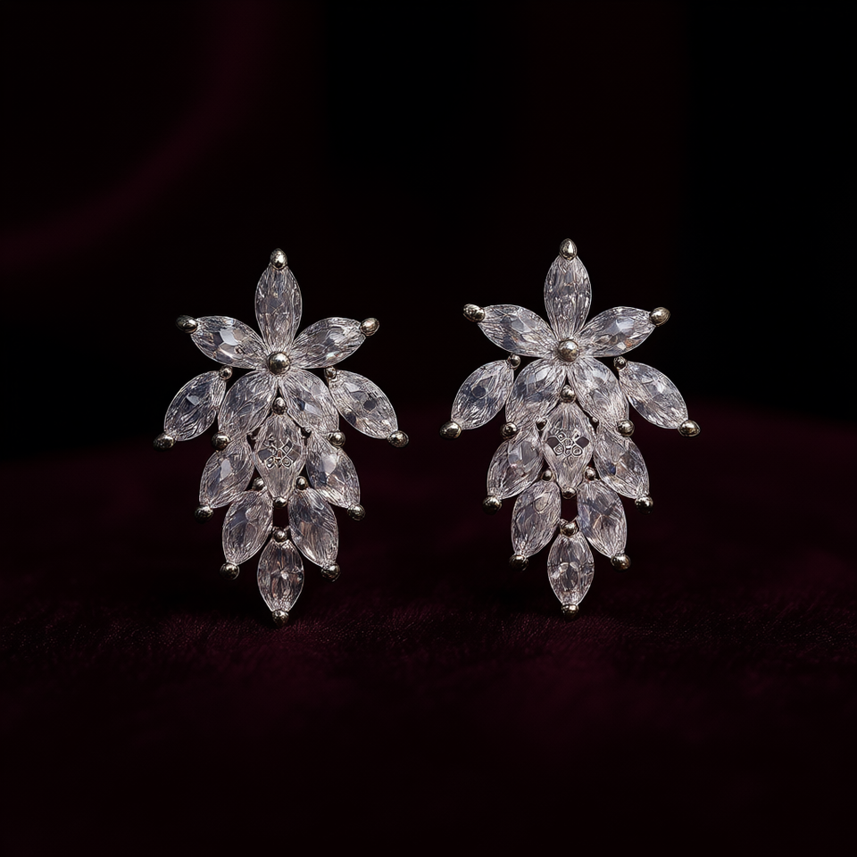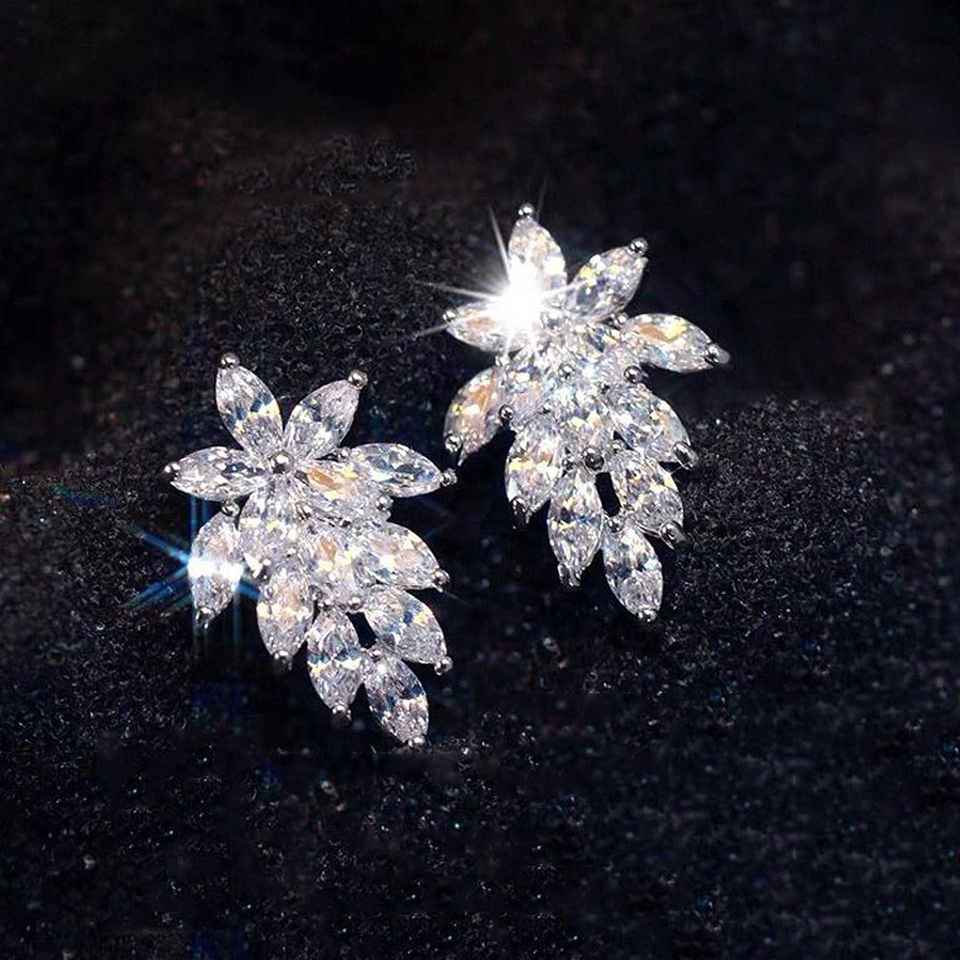 Sls Flower Stud Earrings 925 Silver Crystal Rhinestone Wedding Romantic Women's Jewelry Claw Setting White Gold