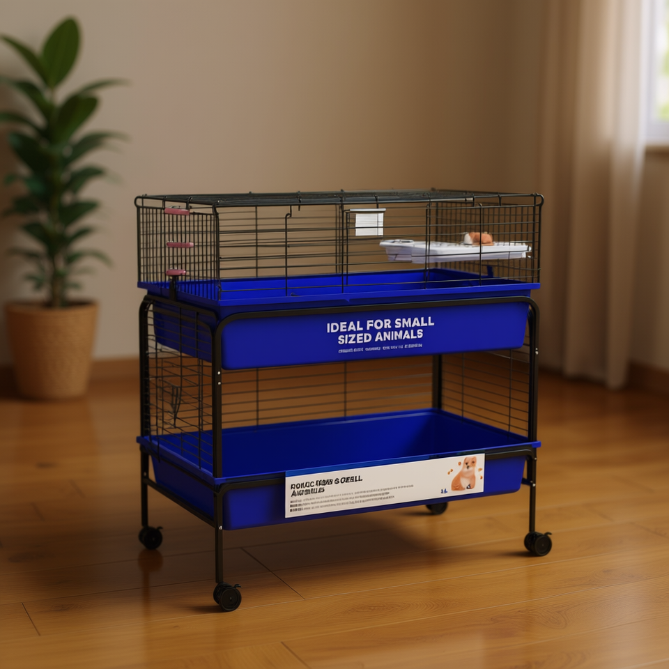 Gabbia Premium per Piccoli Animali a Due Piani con Telaio in Filo d'Acciaio e Vassoio in Plastica, Design Moderno e Resistente per Piccoli Animali Domestici