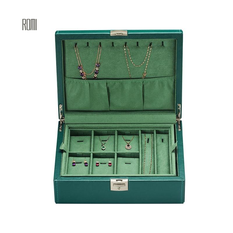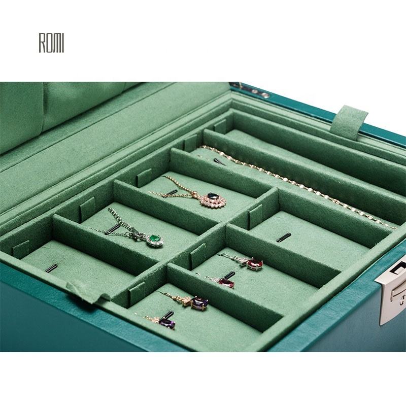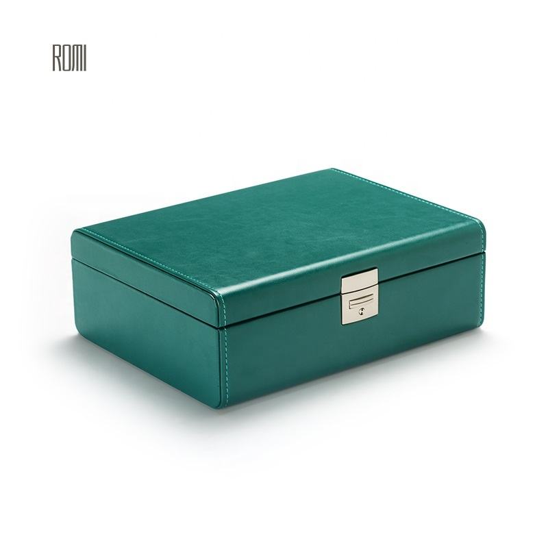 Piccolo verde antico contenitore di monili di cuoio con il supporto di viaggio dell'organizzatore di immagazzinaggio per i braccialetti del braccialetto orecchini ad anello regalo
