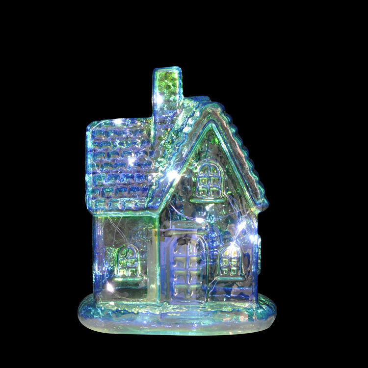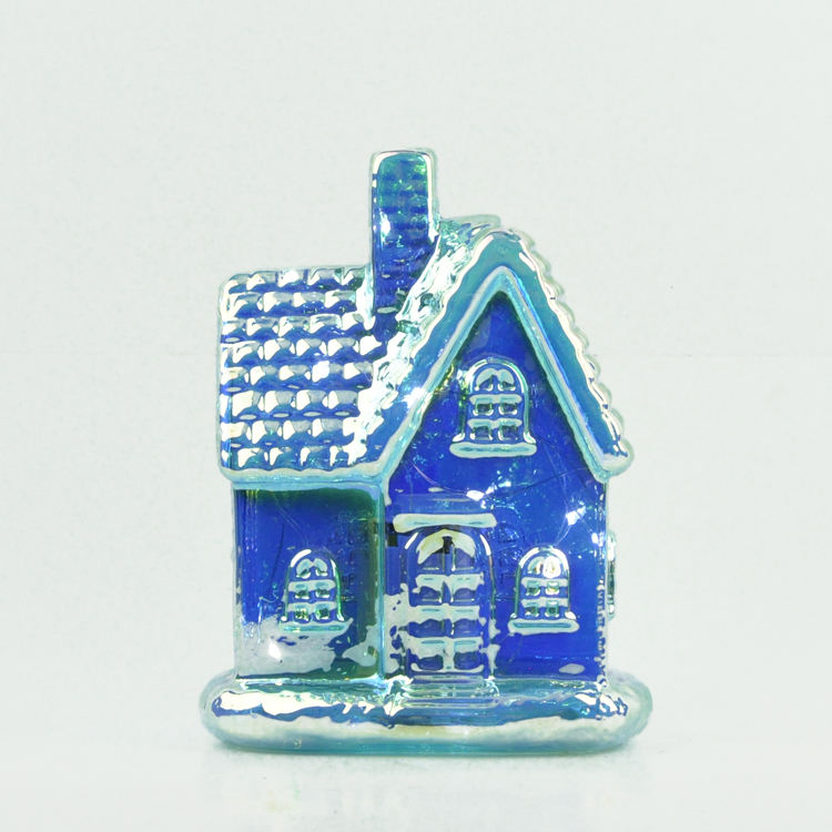 Packaging Details:Small blue chinese glass christmas decorating house with led lights: