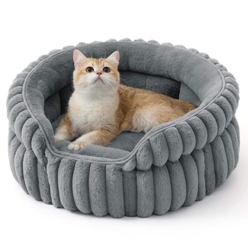Cuccia per Gatti Piccola, Lavabile, Rotonda e Carina per Gatti da Interno, in Velluto a Coste Super Morbido con Fondo Antiscivolo